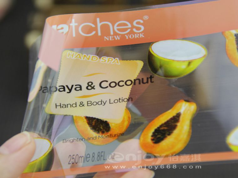 標簽特性 沐浴露標簽可防水、防油,不易脫落,印刷清晰、顏色鮮艷不褪色,表面光滑,厚薄均勻,光澤度柔韌度好,不可撕破